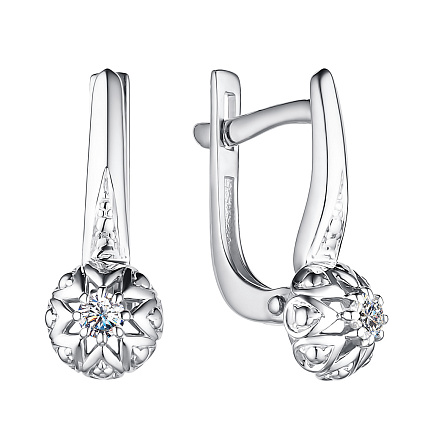 Серьги с английским замком из белого золота с бриллиантами