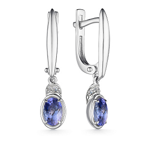 Серьги с английским замком из белого золота с бриллиантами, танзанитами
