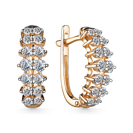 Серьги с английским замком из красного золота с бриллиантами