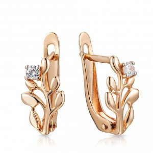 Серьги с английским замком из красного золота с фианитом