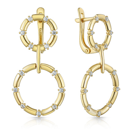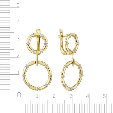 Серьги с английским замком из желтого золота с фианитом