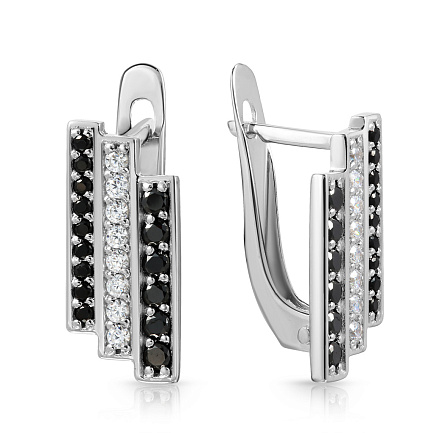 Серьги с английским замком из белого золота с фианитом