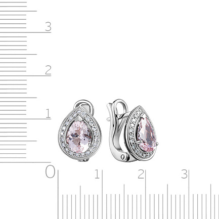 Серьги с английским замком из белого золота с бриллиантами, морганитом