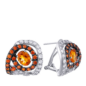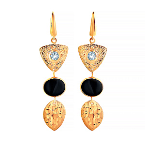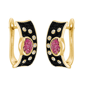 Серьги с английским замком из серебра с фианитом, эмалью и золочением