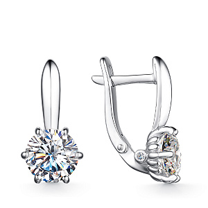 Серьги с английским замком из серебра с фианитом