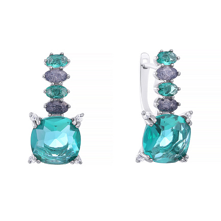 Серьги с английским замком из серебра с стеклом и фианитом