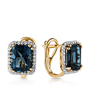 Серьги с английским замком из желтого золота с бриллиантами и топазом