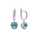 Серьги с английским замком из белого золота с бриллиантами, топазами