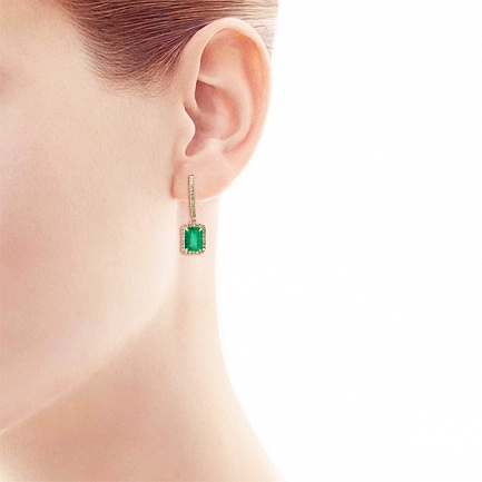 Серьги с английским замком из желтого золота с изумрудами, бриллиантами