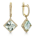Серьги с английским замком из желтого золота с бриллиантами, аметистом