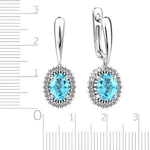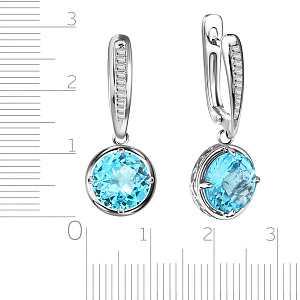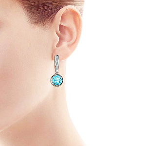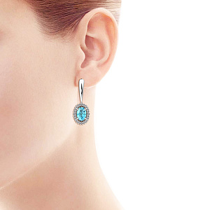 Серьги с аквамарином, топазом с английским замком из белого золота