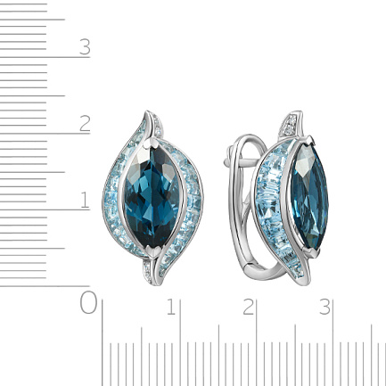 Серьги с английским замком из белого золота с бриллиантами, топазом
