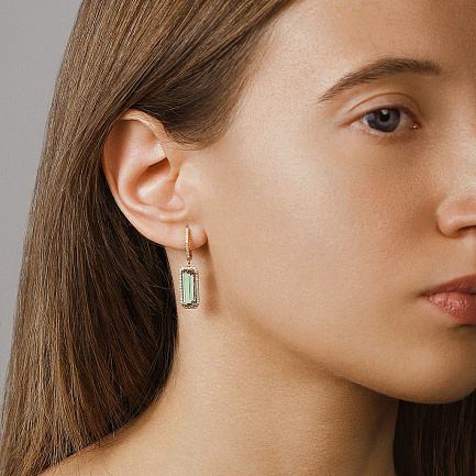 Серьги с английским замком из желтого золота с бриллиантами