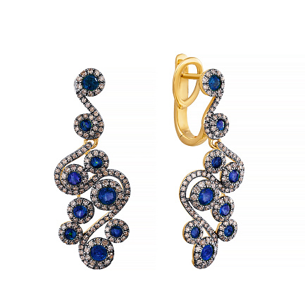 Серьги с английским замком из желтого золота с бриллиантами