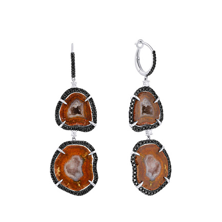 Серьги с английским замком из белого золота с бриллиантами, жеодами