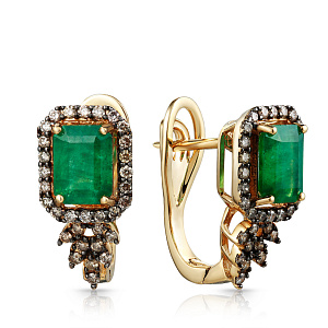 Серьги с английским замком из желтого золота с бриллиантами