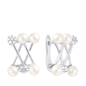 Серьги с английским замком из белого золота с бриллиантами, жемчугами