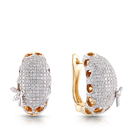 Серьги с английским замком из желтого золота с бриллиантами