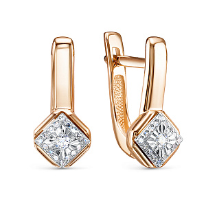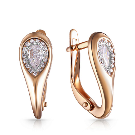 Серьги с английским замком из красного золота с фианитом