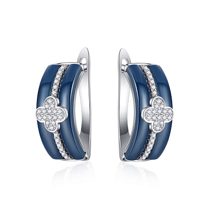Серьги с английским замком из серебра с керамиками и циркониями