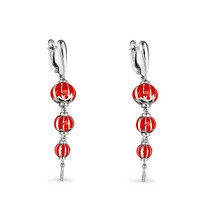 Серьги с английским замком из серебра с керамиками, фианитами