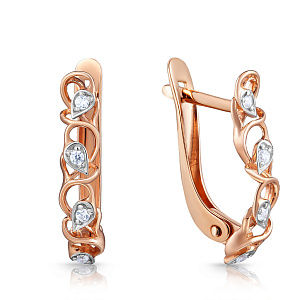 Серьги с английским замком из красного золота с фианитом