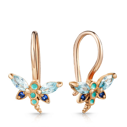 Серьги с французским замком из красного золота с фианитом