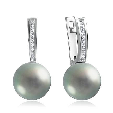 Серьги из белого золота с бриллиантами, жемчугом