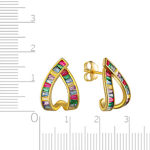 Серьги из серебра с фианитами, золочением