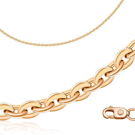 Якорное плетение - довольно популярное, внешне напоминающее якорную цепь. Как правило, классическая форма звеньев такого плетения отлично дополнит любой наряд и подойдет не только взрослым, но и детям. Дорогой блеск цепи из красного золота добавит роскоши в повседневный образ, а прочность драгоценного металла и его устойчивость к воде и химическим воздействиям позволят носить украшение долгие годы и без потери внешних качеств.