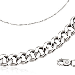 В панцирном плетении все звенья в сцеплении расположены не перпендикулярно, как во многих других плетениях, а как будто в одной плоскости. Это делает цепь из серебра более прочной и гораздо менее подверженной разрыву. Не случайно панцирное плетение по своей технике схоже со старинным кольчужным плетением, которое всегда обеспечивало защиту и надежность. Такая цепочка из серебра подойдет всем и к любому образу, а прочность, влагостойкость и серебряный блеск благородного металла позволят носить цепь долго и с удовольствием.