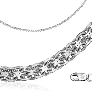 Цепь автомат из белого золота, плетение якорное двухрядное, бисмарк