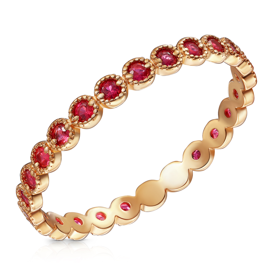 ● Кольца. Можно подобрать лаконичное изделие с небольшим камушком или ювелирный шедевр с драгоценной дорожкой. Отличный вариант – обручальное кольцо с рубином. Минерал со страстным оттенком станет символом любви двух сердец.